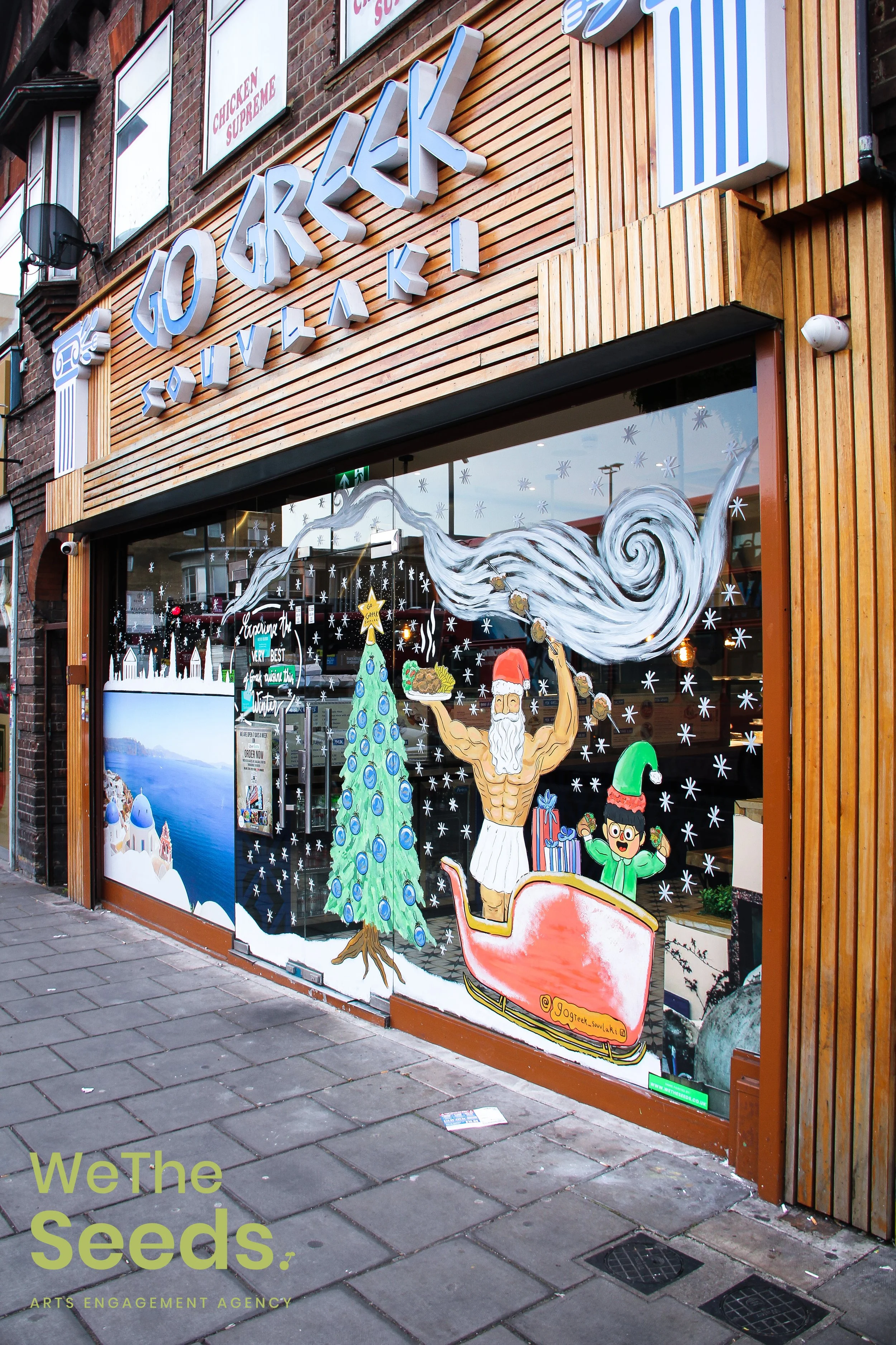 There is no doubt that when one imagines Christmas, the colours of red and green flashing lights appear intertwined around Christmas trees, along with the aroma of warm baked bread pudding. However, as a brand and business, it is always good to think outside of the box and get creative when having window art painted on your shop window.