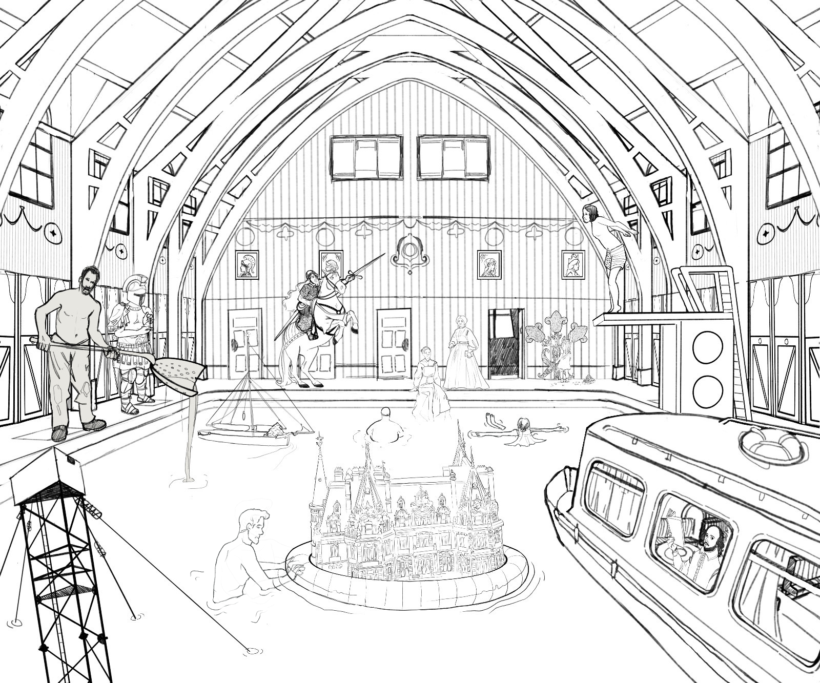 Droitwich Spa is a place with a rich story to tell — from its world-renowned salt production and brine baths to its distinctive radio towers. The mural for Emm's Haberdashery was developed using extensive reference material to ensure historical accuracy. For example, the Severn Trows featured in the design had to match historical records precisely, including the details of it’s sail, with the details reproduced as “like for like” as possible! Every design element of the mural was carefully considered and placed to create a piece that is deeply rooted in Droitwich’s life and heritage, reflecting the town’s unique identity.