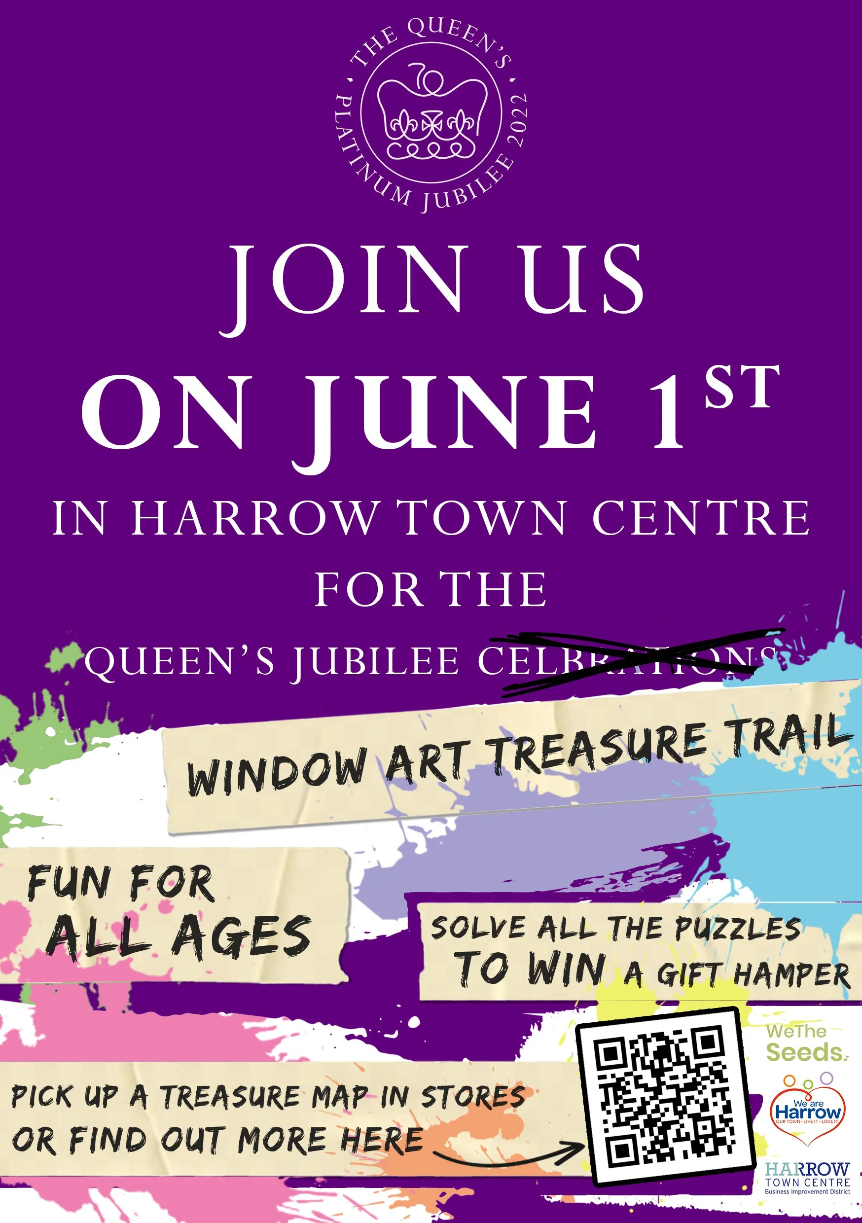 Queen's Jubilee Themed Window Art Treasure Trail Campaign- HA1 Business Improvement District (BID)