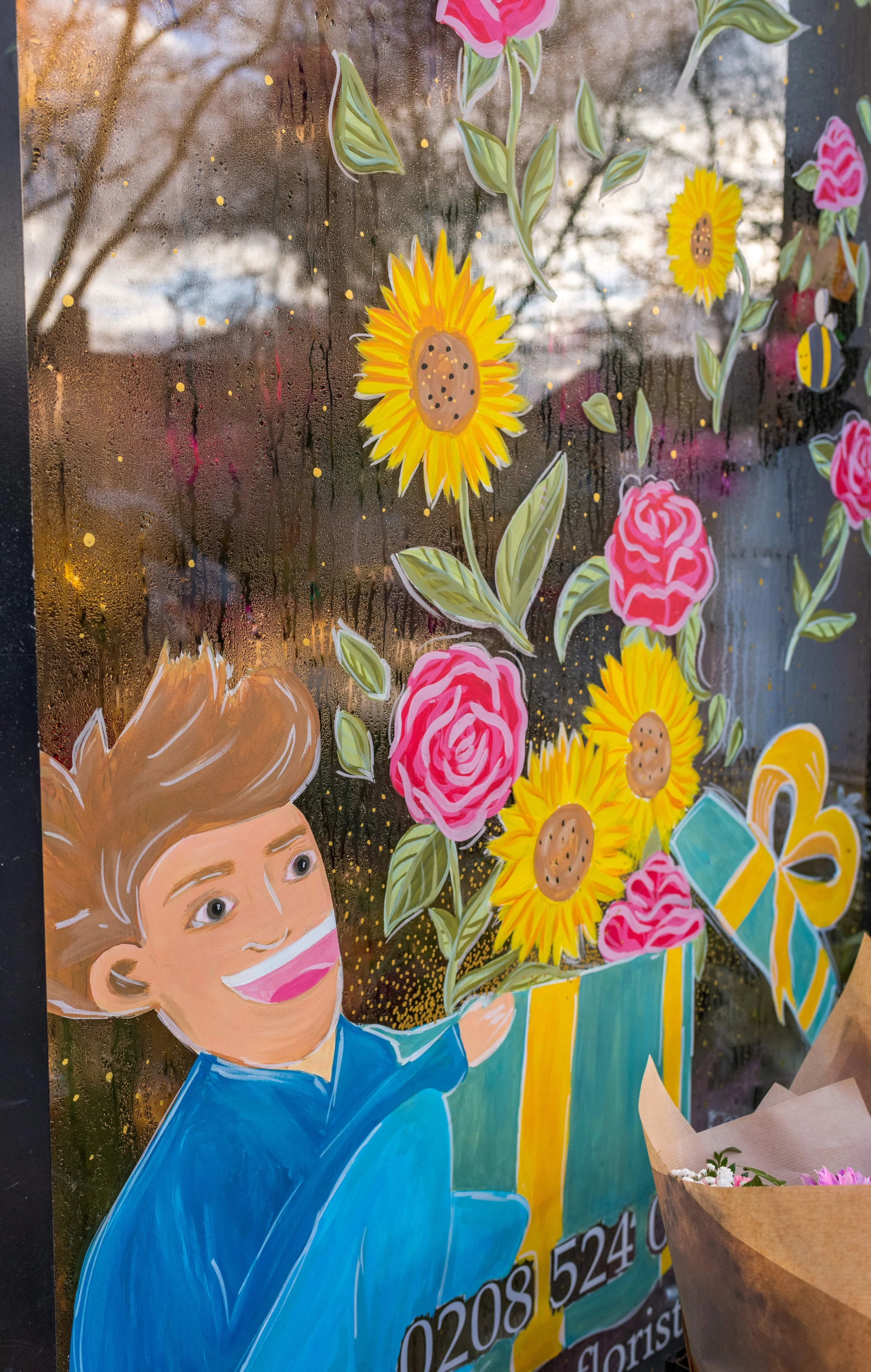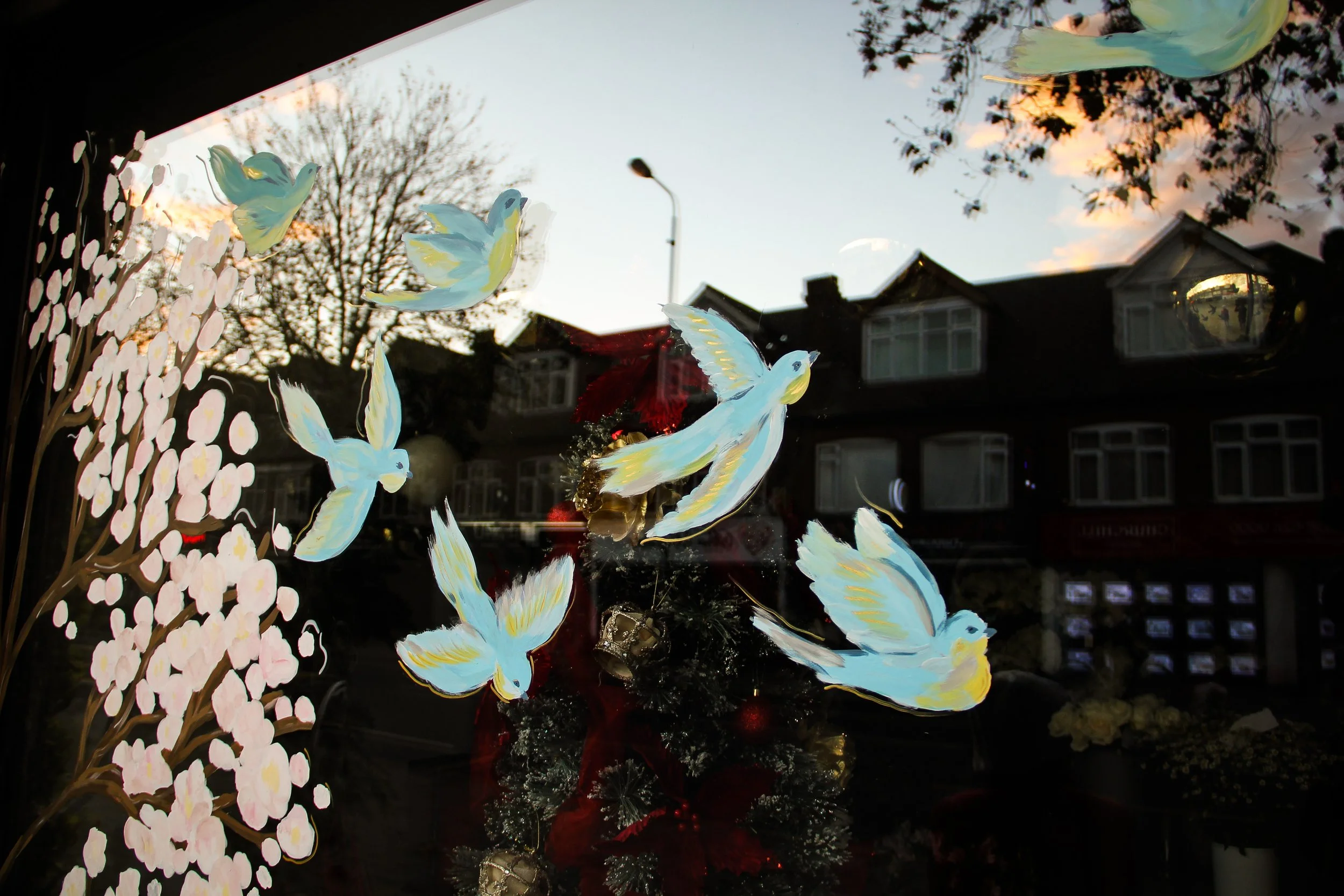 For the public art trail launch on December 4th 2021, our team of specialist window artists started painting each high street business’s design. Our team worked alongside local artists sourced, screened & briefed by WeTheSeeds.
