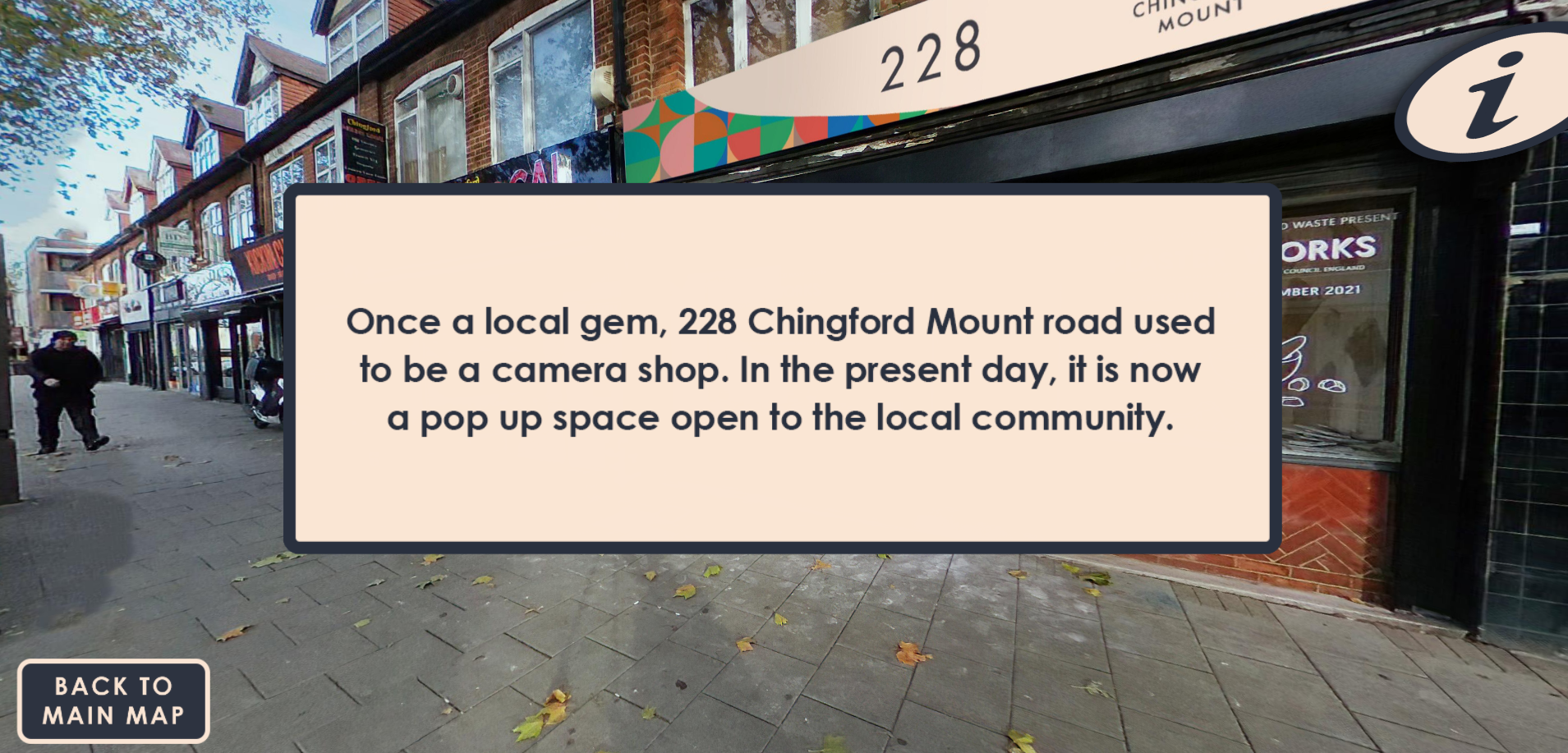 WeTheSeeds partnered with TD360 to create the virtual map, capturing the “treasures” of the area with a 360° virtual camera. The treasures, which included Chingford Mount’s unique qualities including heritage, historical architecture and green spaces were added to the virtual map along with factual information.