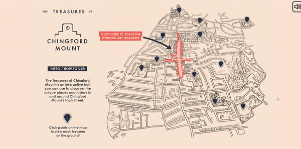 The Treasures of Chingford Mount - Window art trail, Chingford Mount branding & virtual map